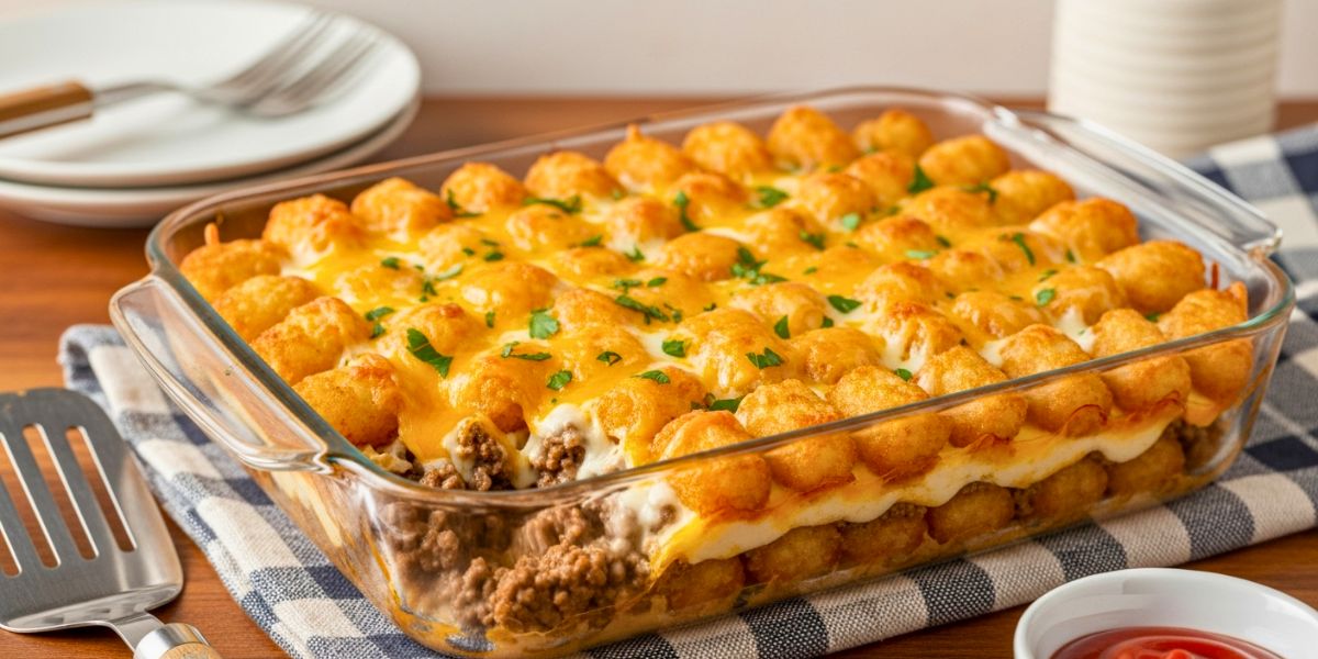 The secret is layering. Ground beef gives rich flavor. Creamy sauce adds softness. Cheese melts into every layer. Tater tots become crispy on top.