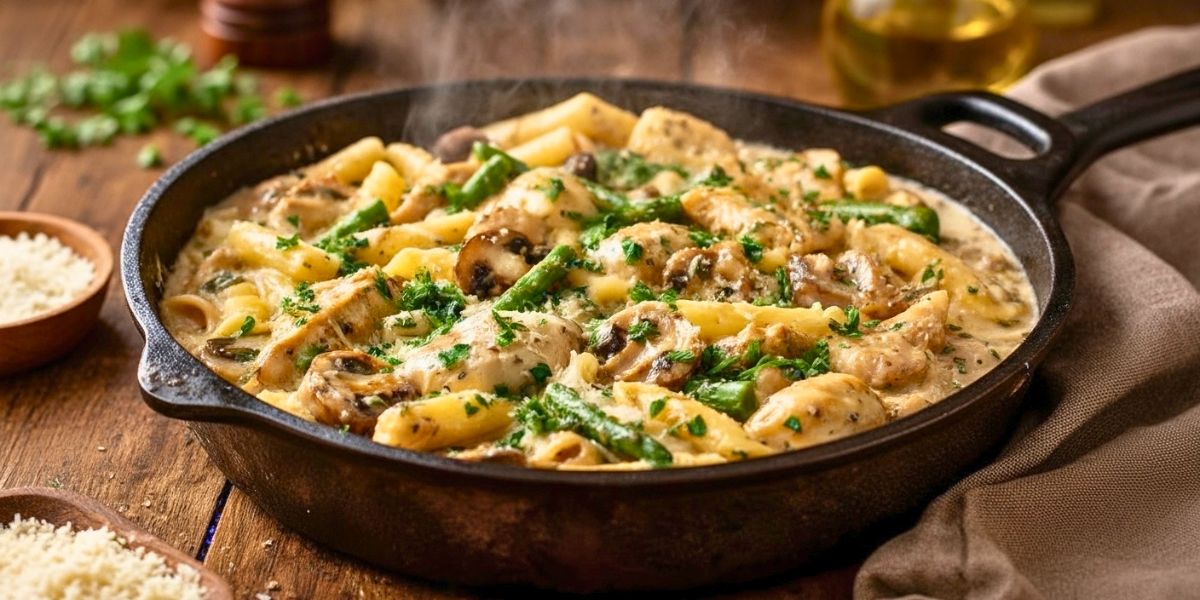 Creamy Mushroom Asparagus Chicken Penne Recipe