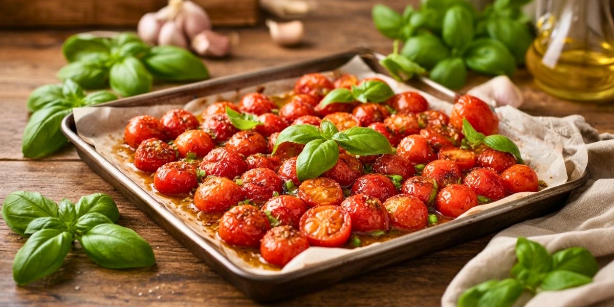Place tray in oven. Roast for 35–40 minutes until tomatoes are soft and slightly caramelized. - Add Fresh Basil